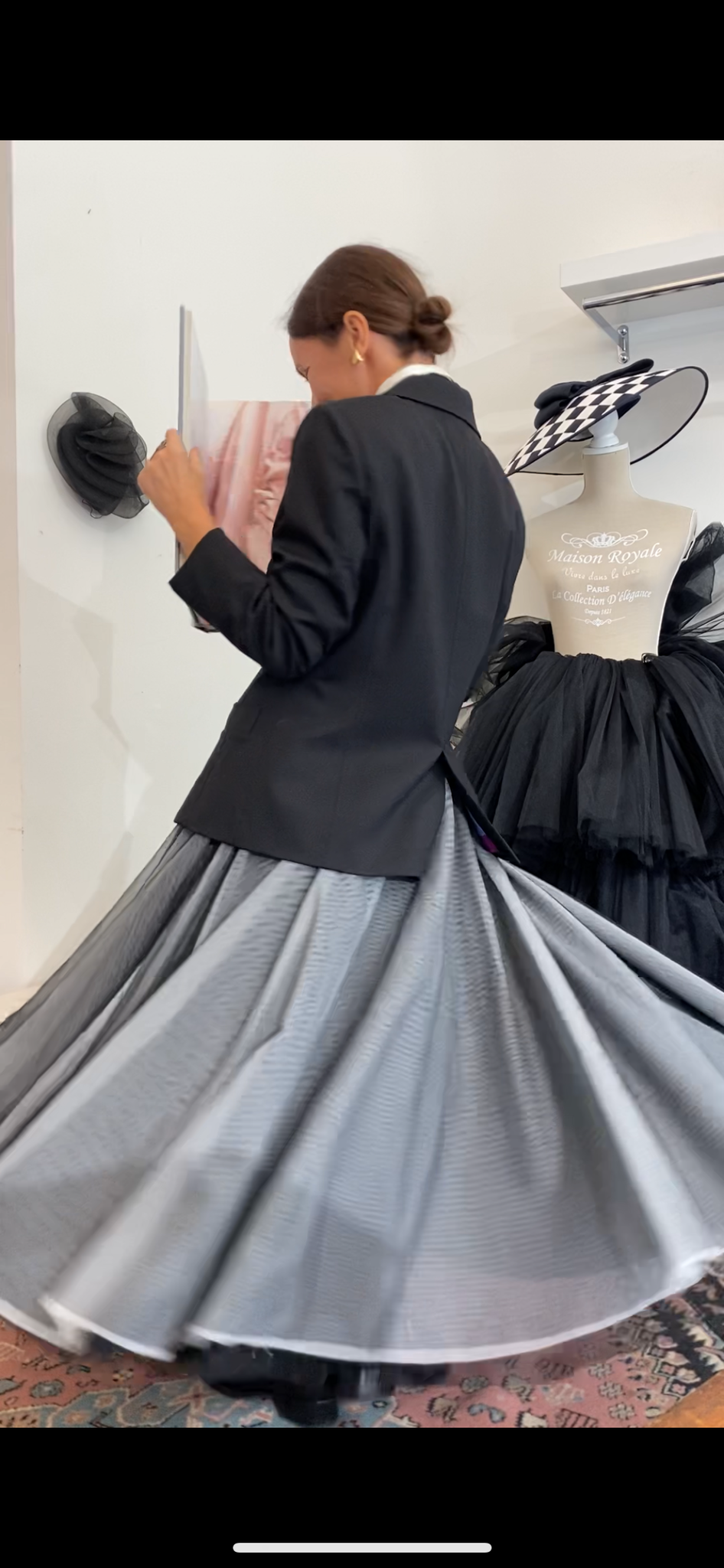 Esterno in fresco lana nero, interno in raso di seta fantasia iconica Emilio Pucci multicolor.