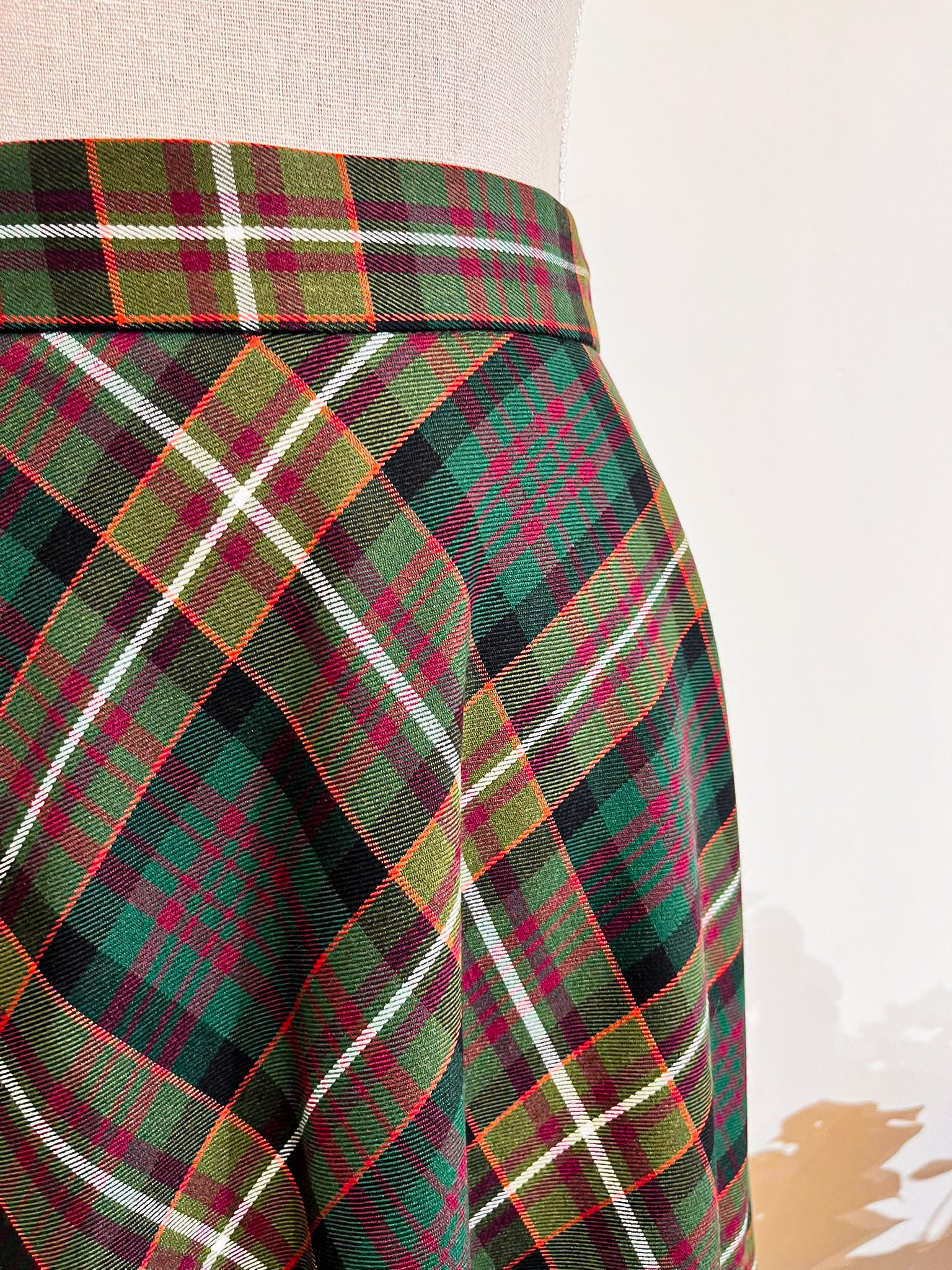 Gonna sartoriale MoodS in lana fantasia scozzese verdone, verde oliva, mattone.