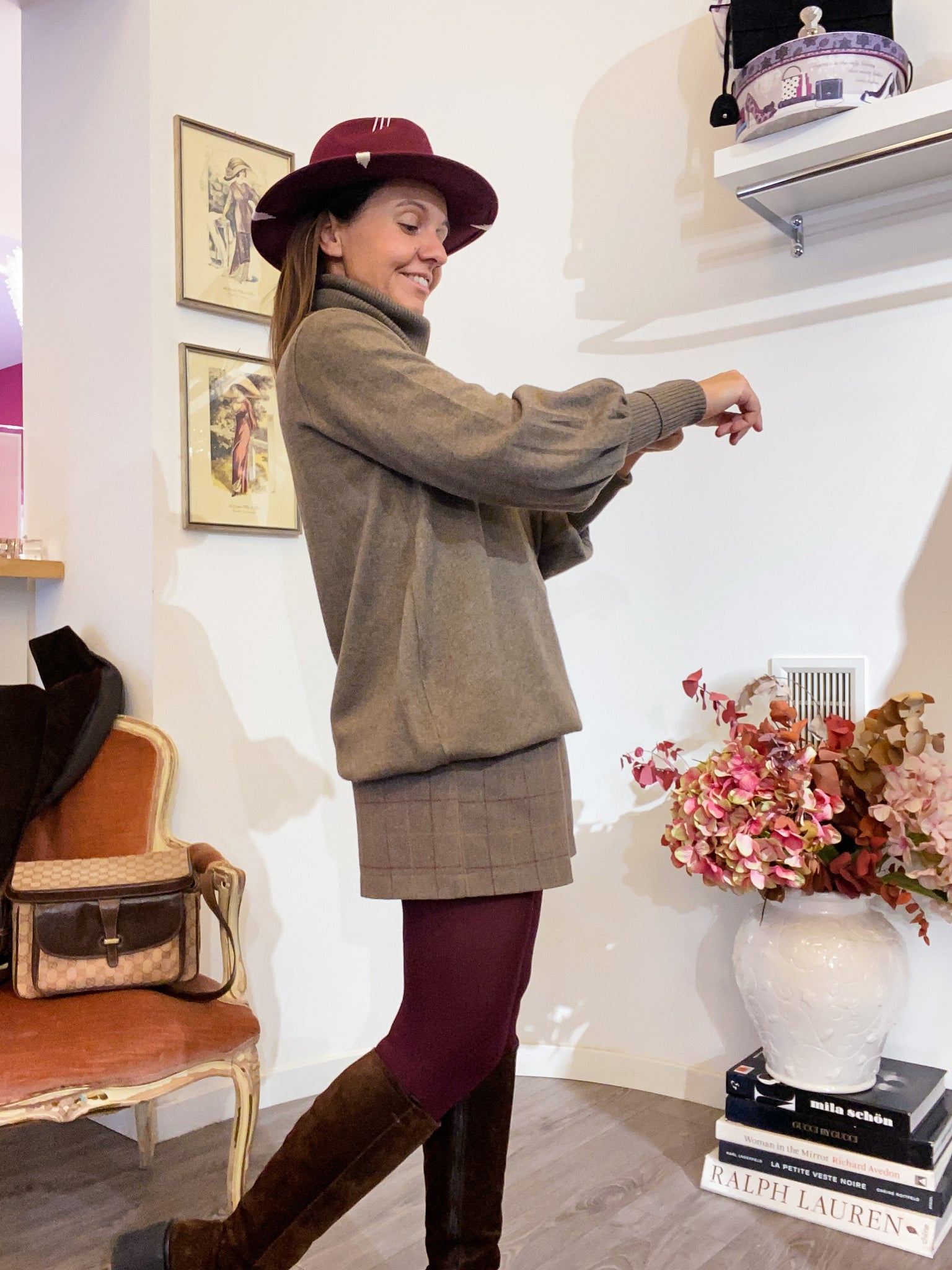 Dolcevita lungo in maglia di lana misto cachemire, color tortora melange.