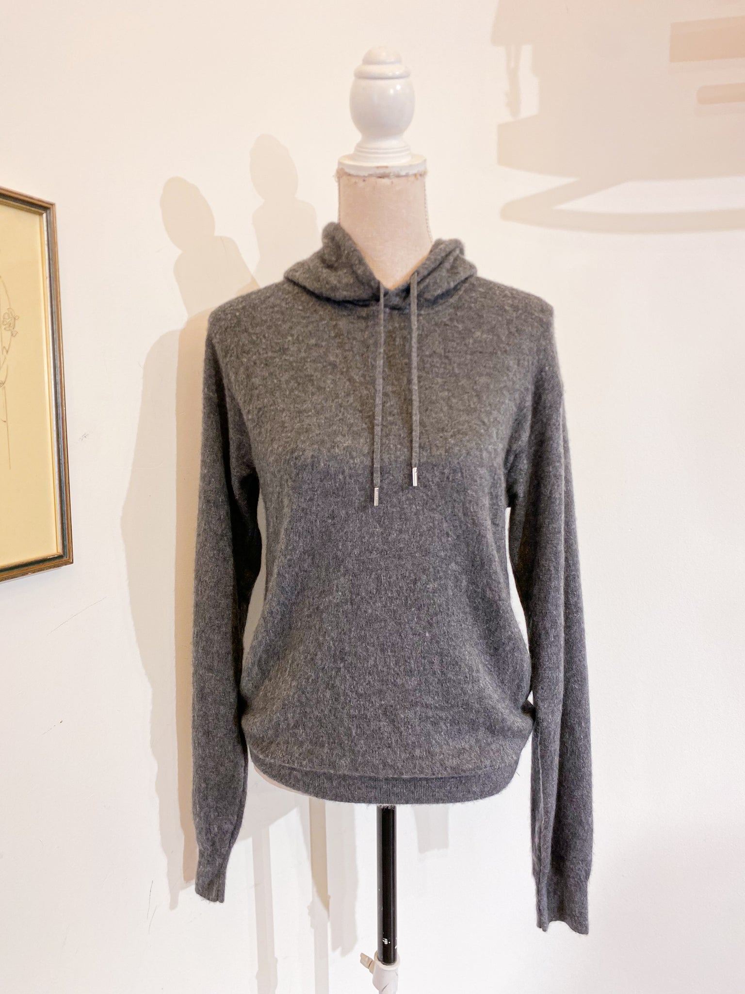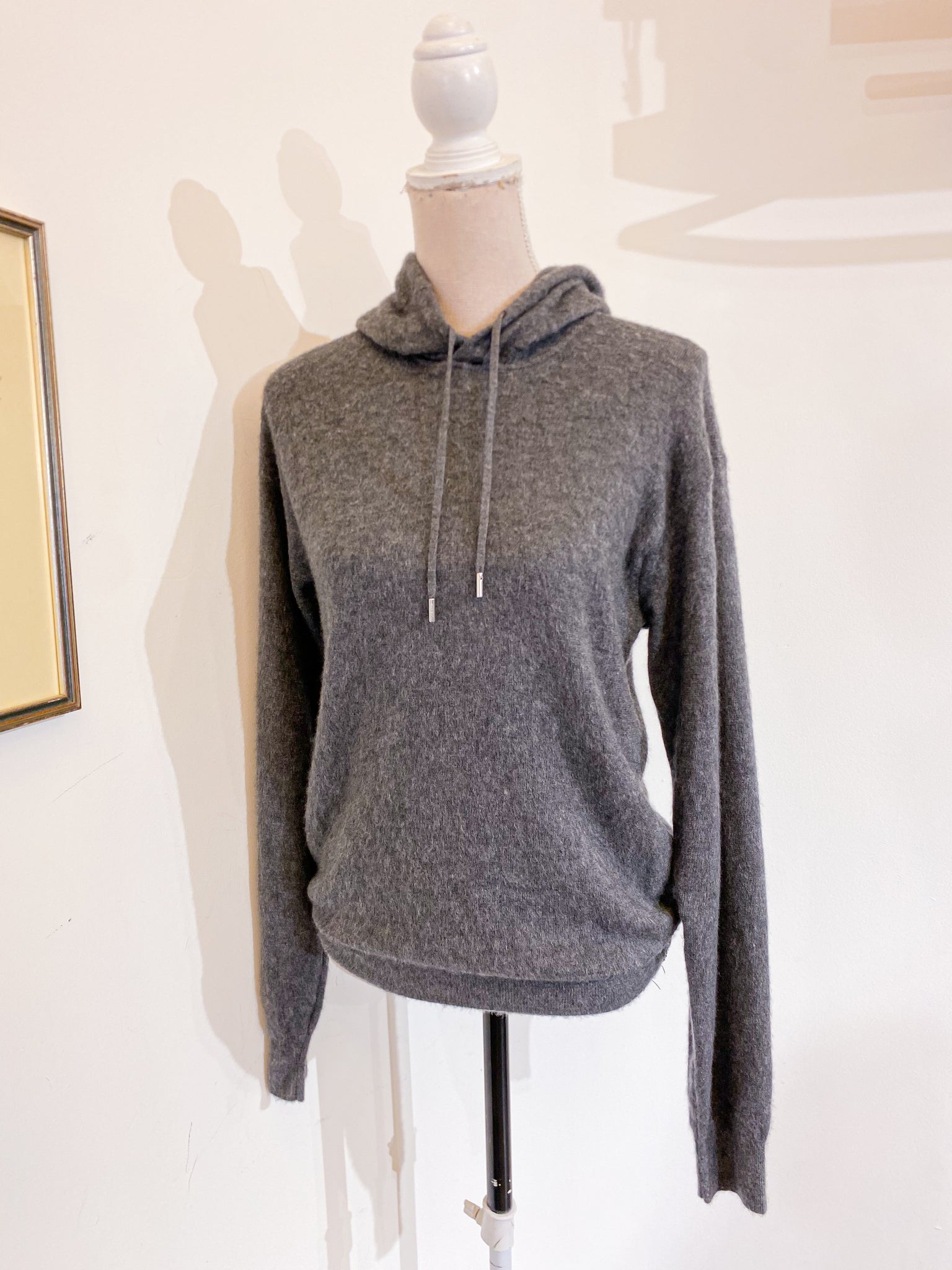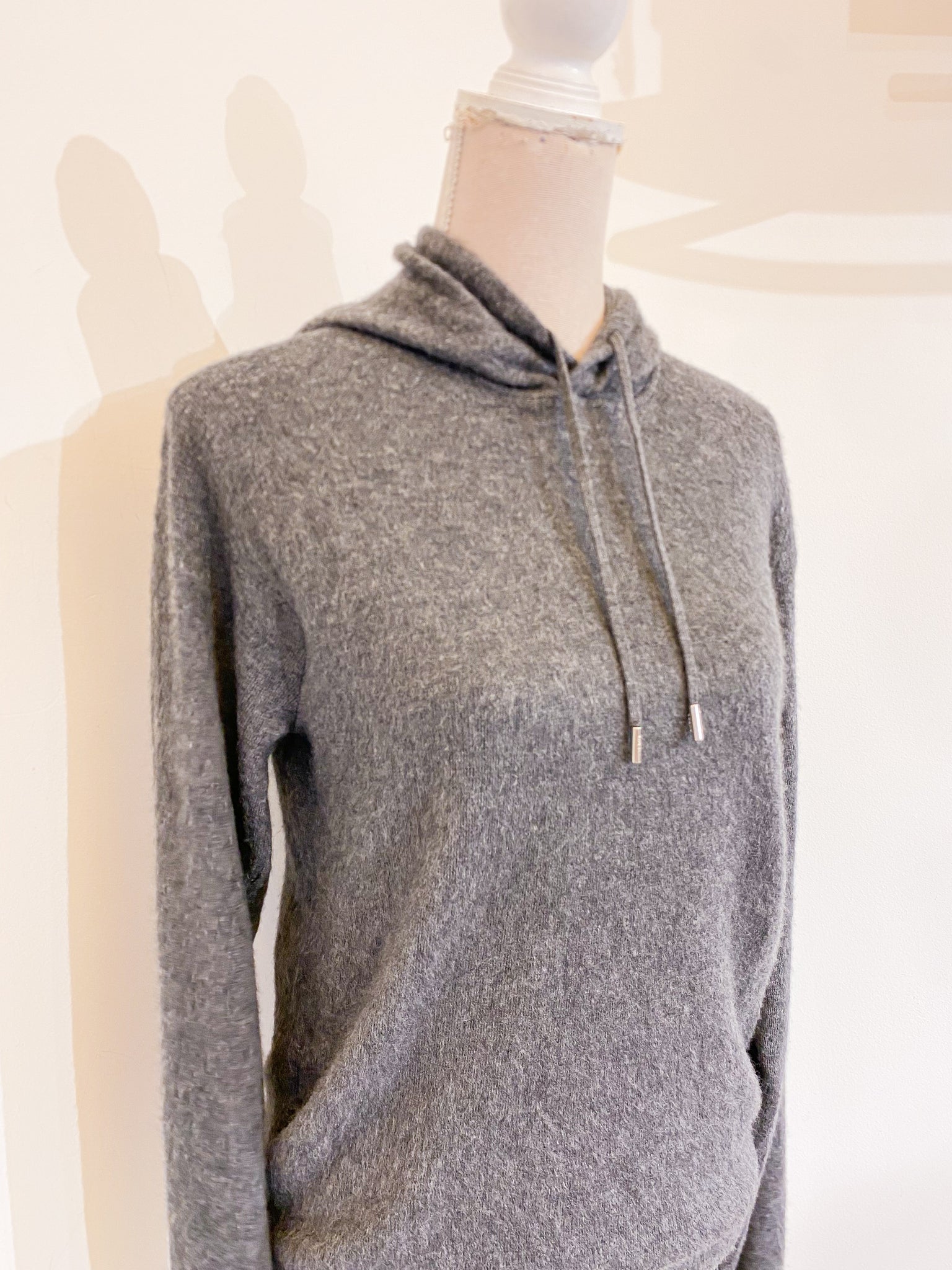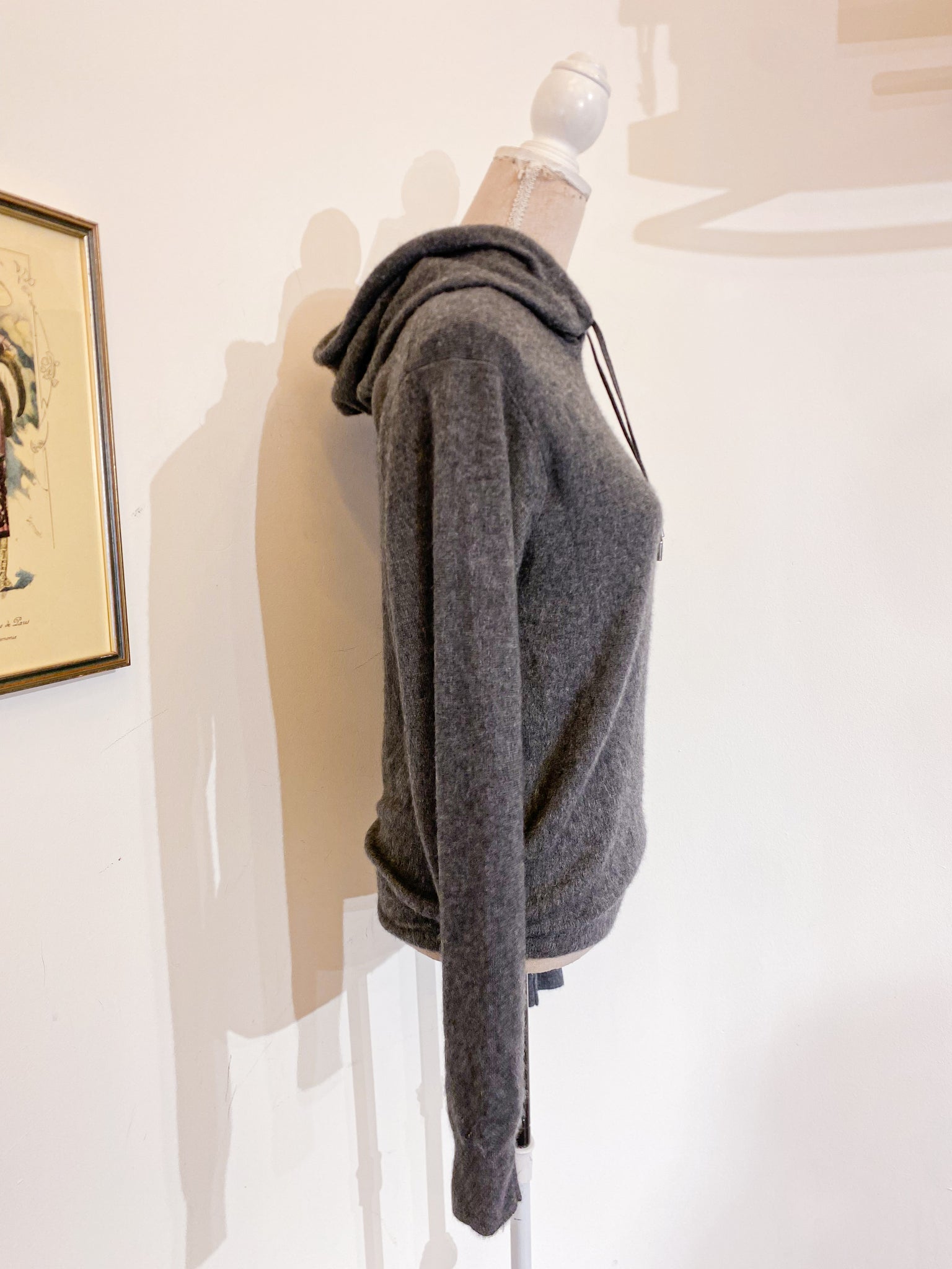 Morbidissima felpa Prada in soffice e pregiata maglia di cachemire grigio. Esterno trama a pelo lungo