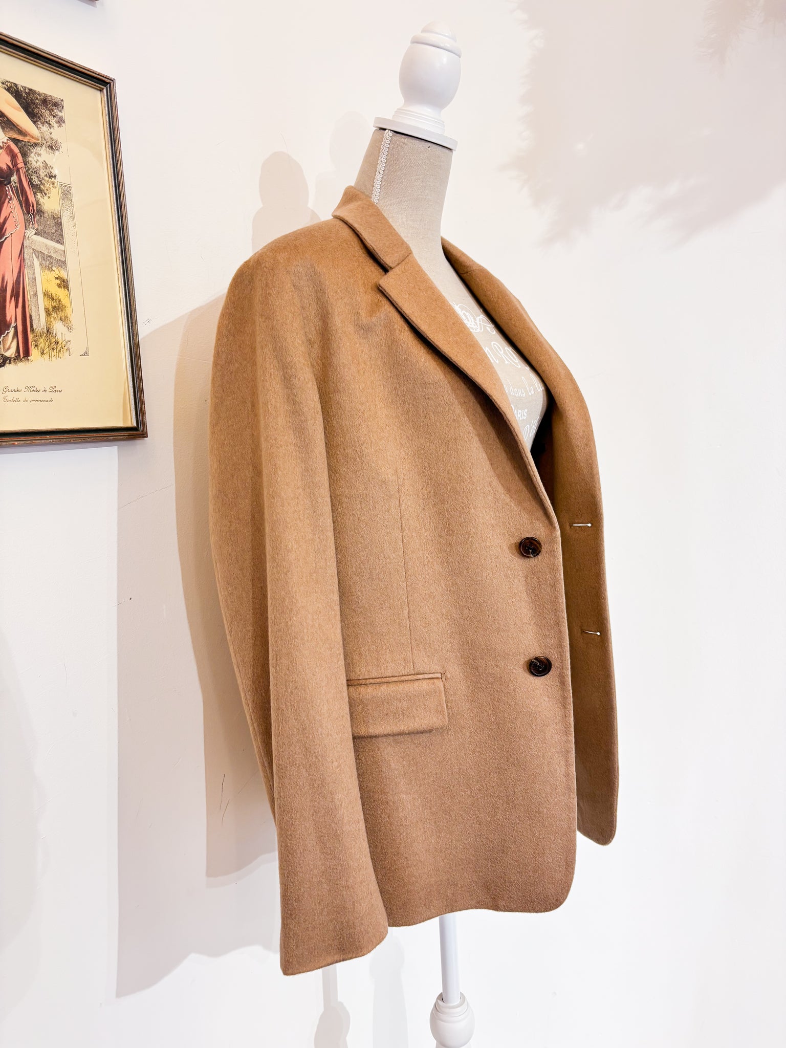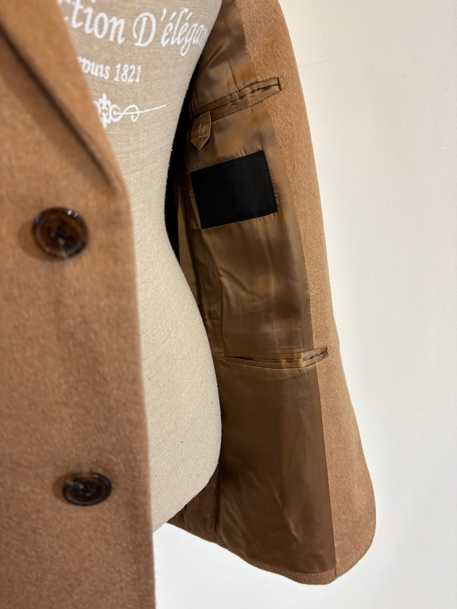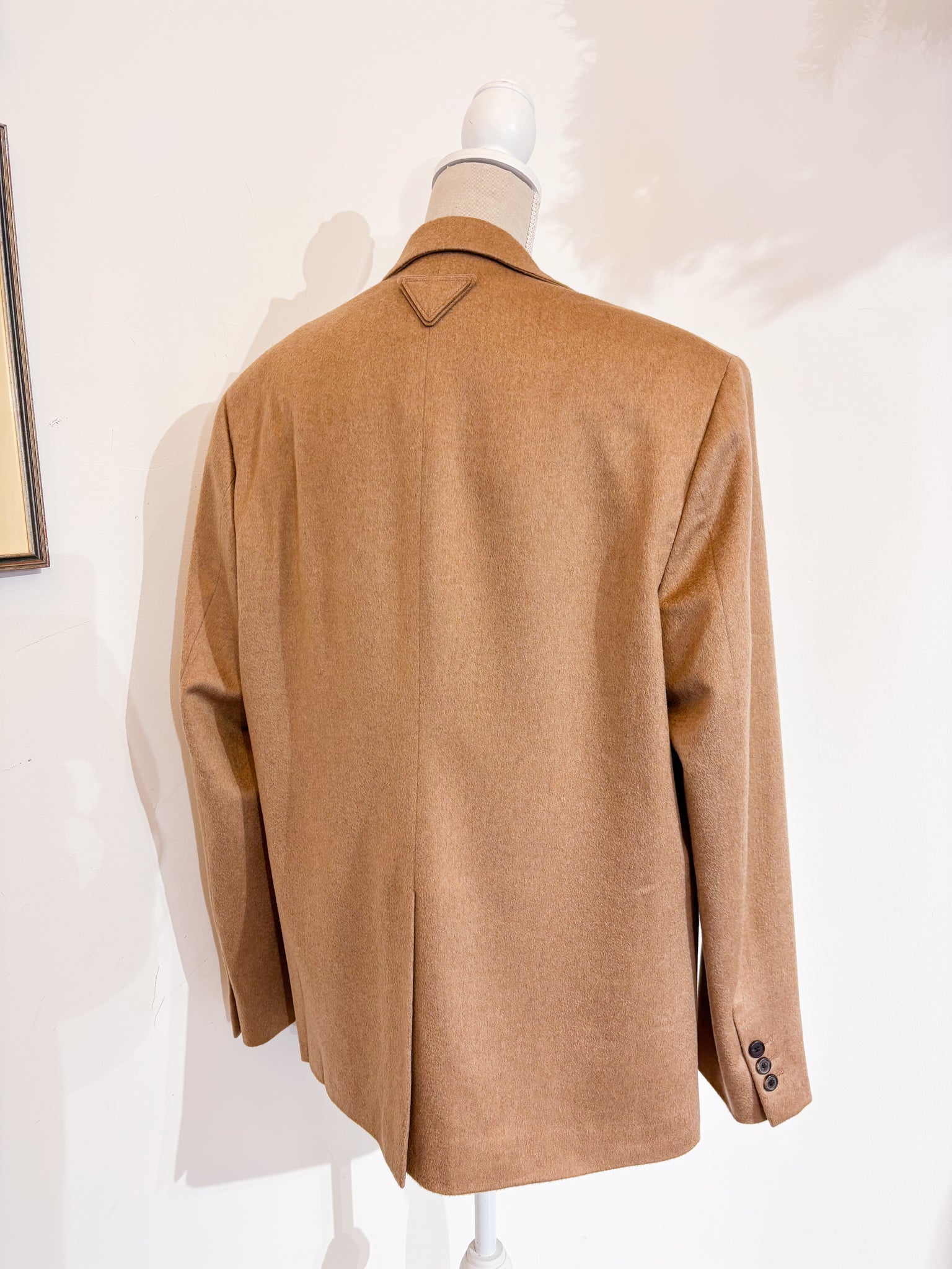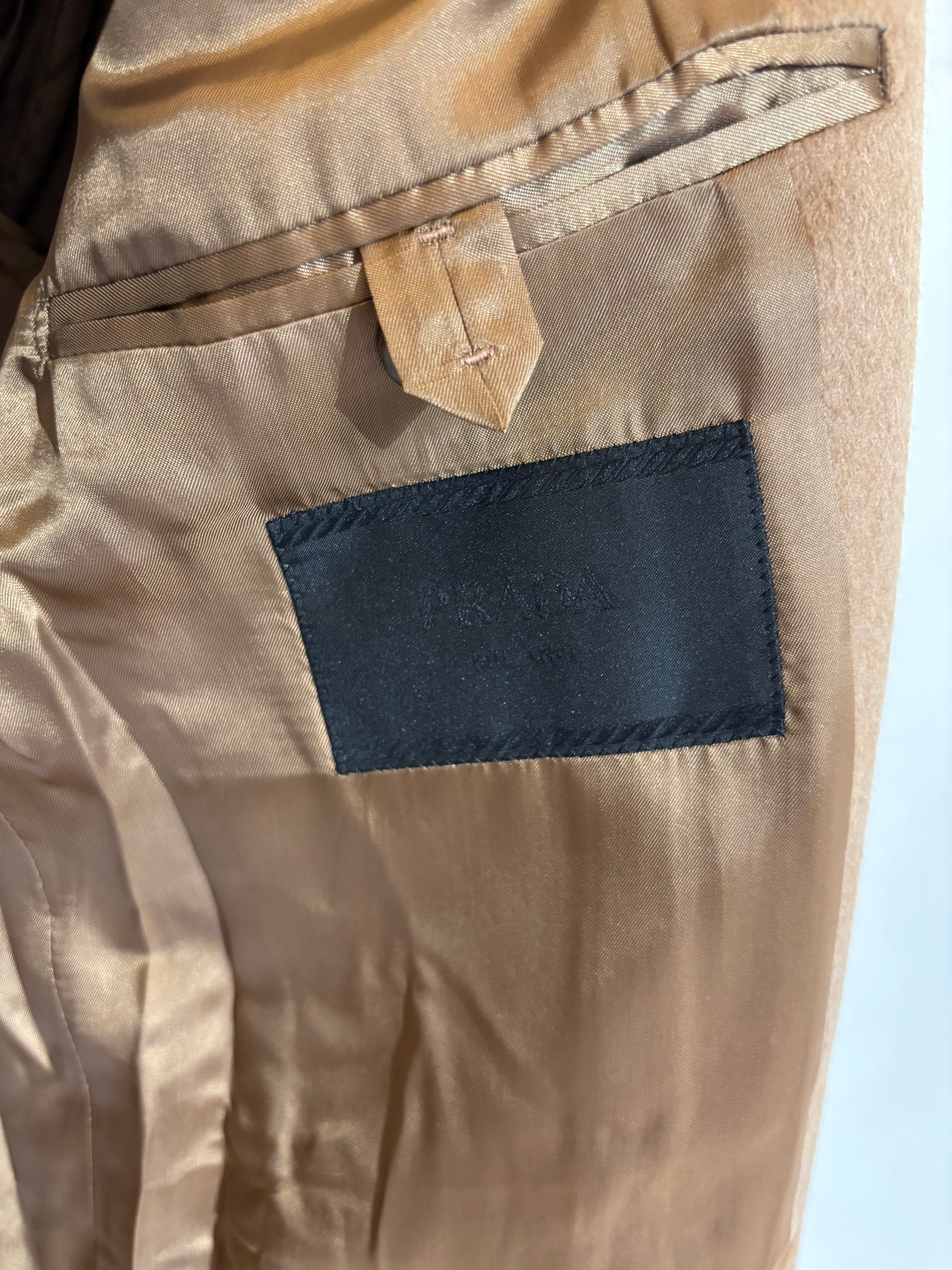 Blazer Prada uomo in lana cammello personalizzato con fodera maniche in seta Prada.