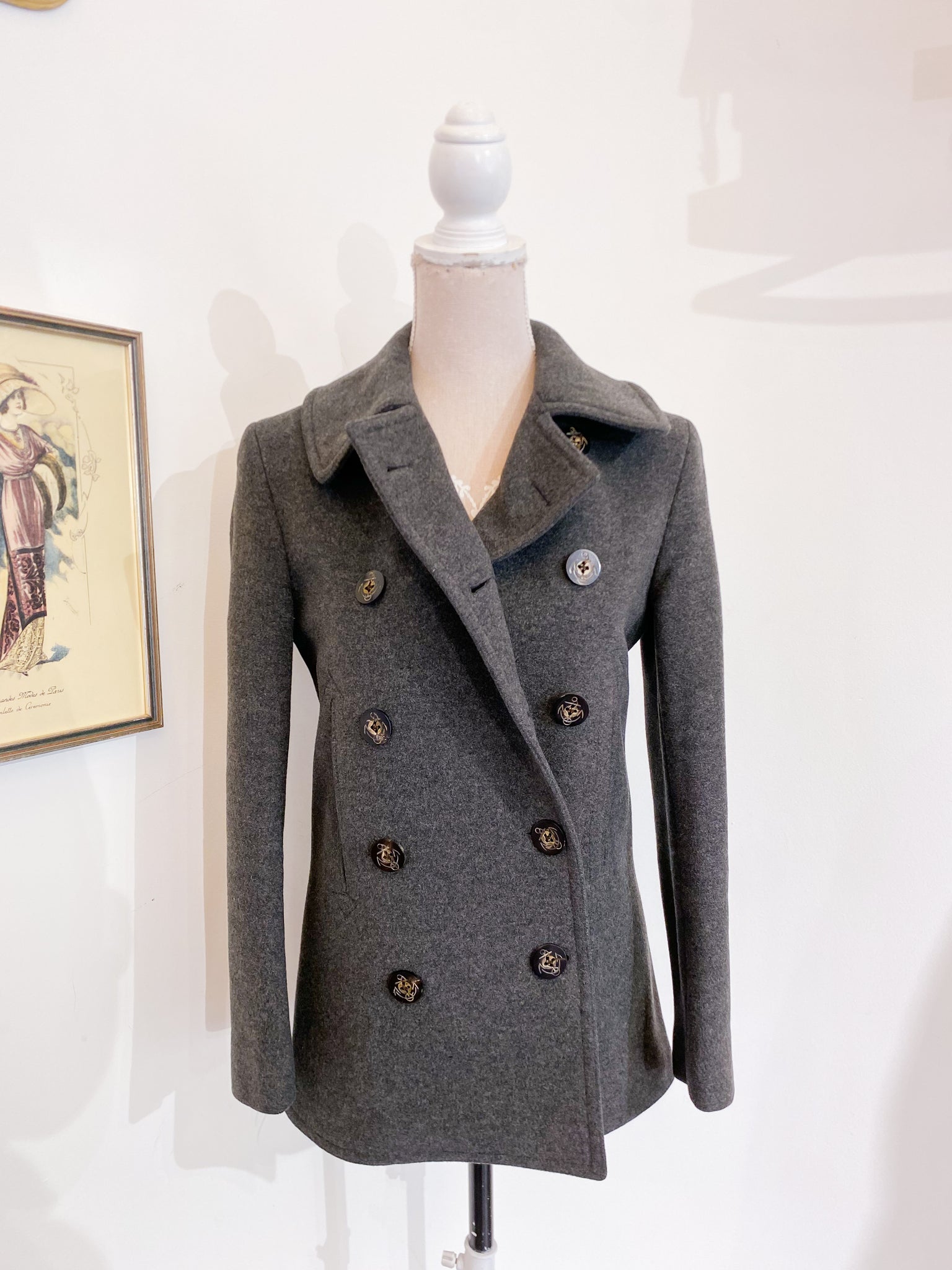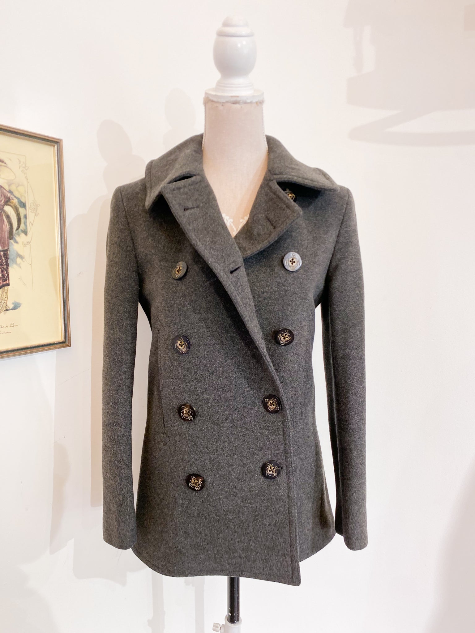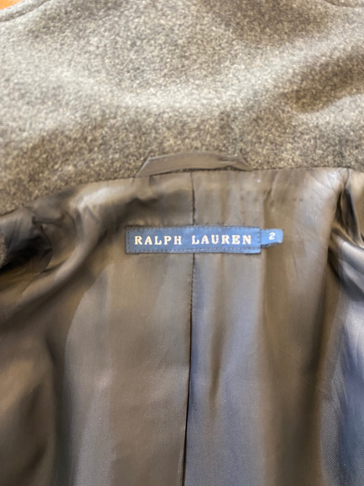 Giaccone corto Ralph Lauren, chiusura doppiopetto in panno di lana grigio melange.