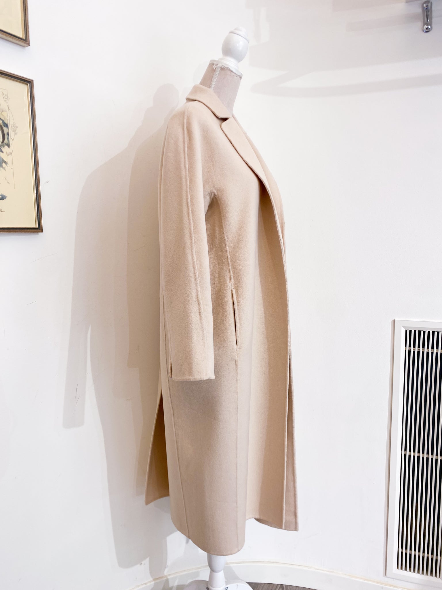Cappotto in panno di lana color ghiaccio. Sfoderato e destrutturato. Mano calda.