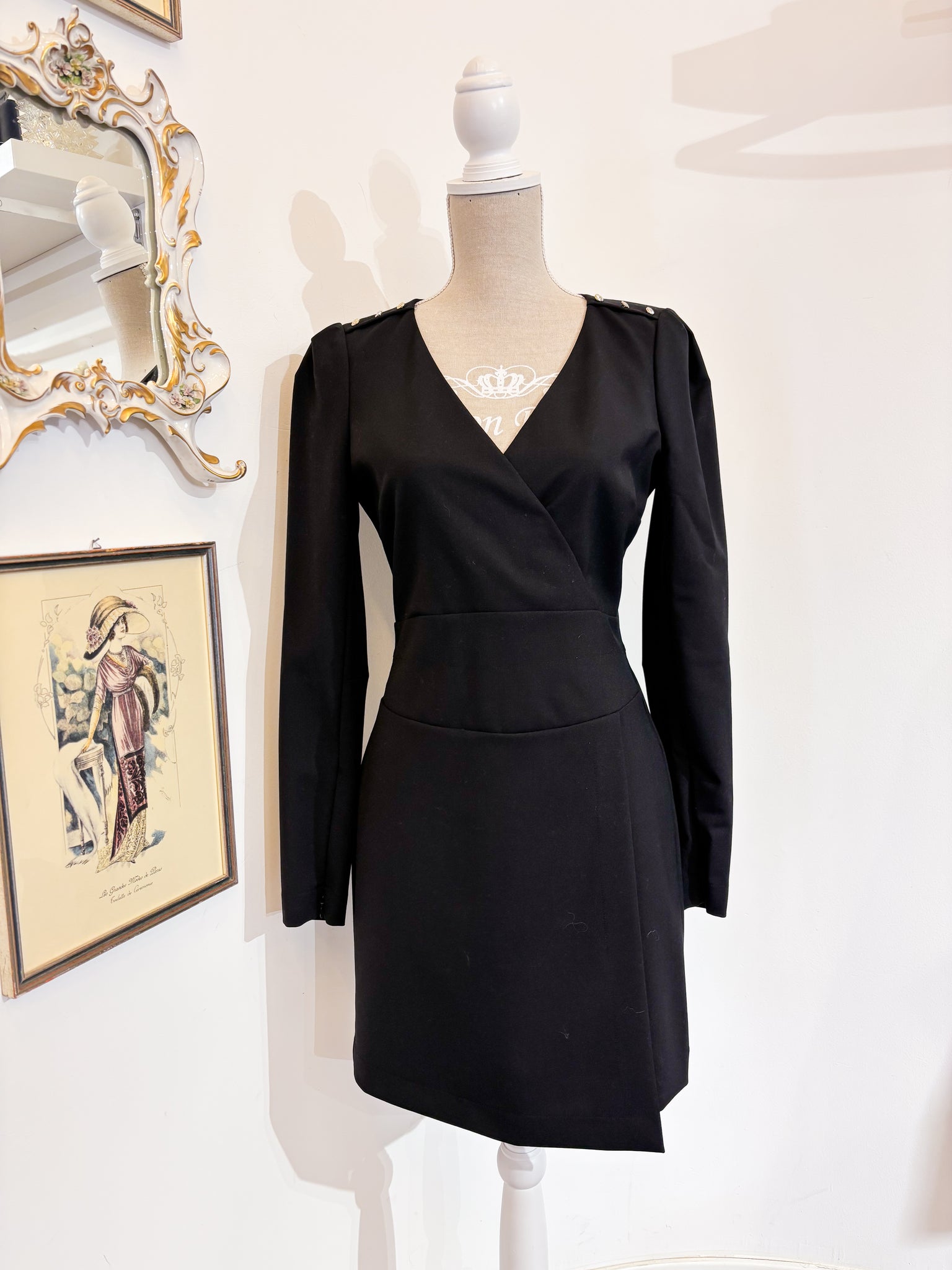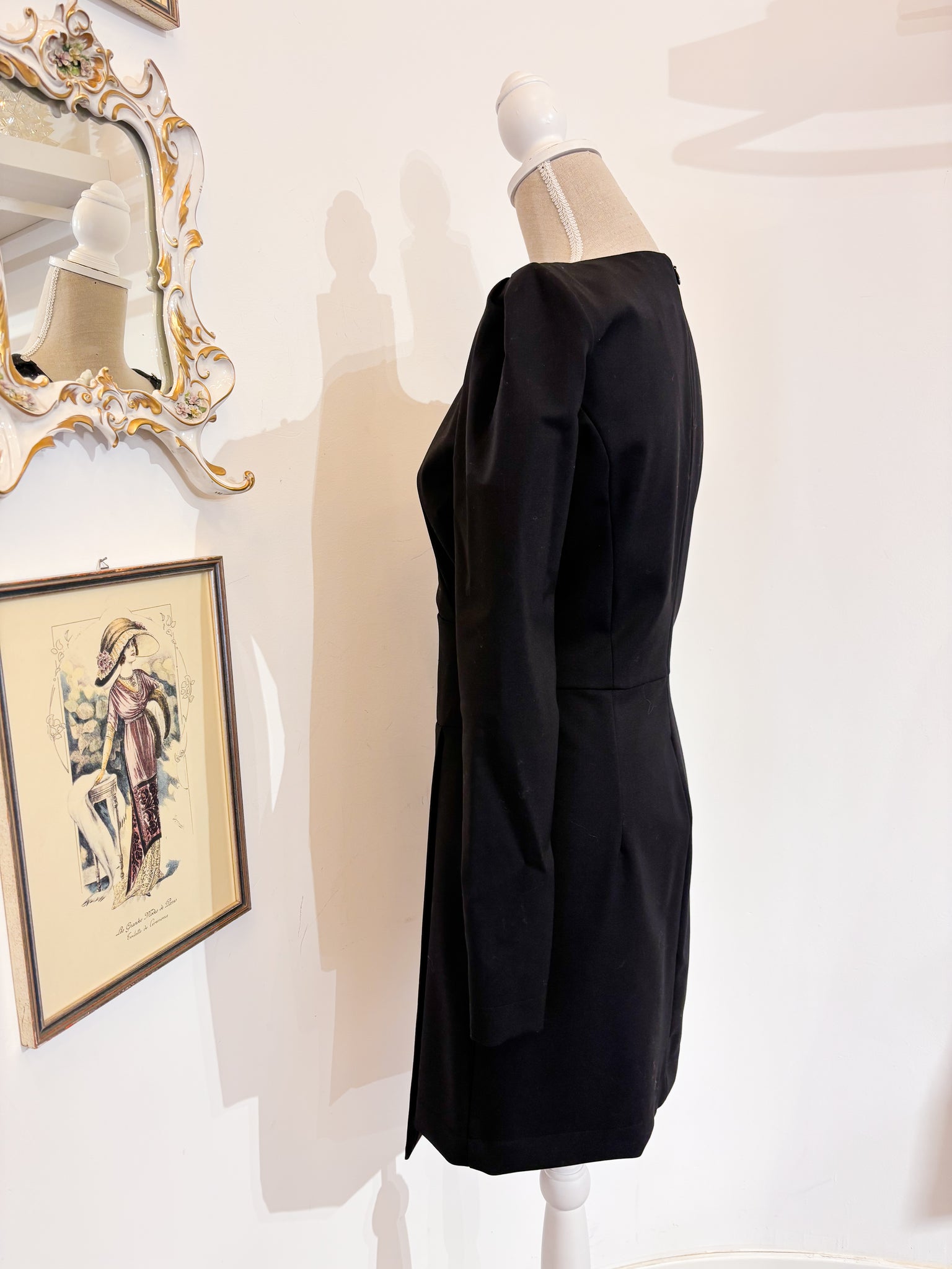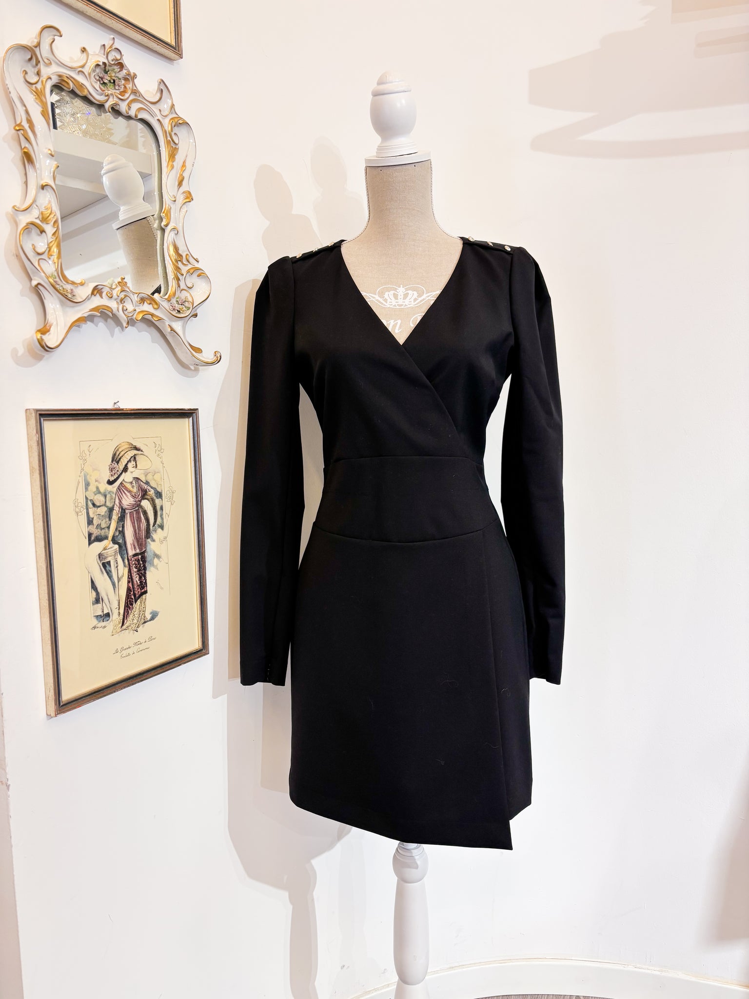 Abito corto Patrizia Pepe dal design elegante e contemporaneo, realizzato in fresco lana elasticizzato nero. Il modello presenta una linea femminile e pulita, ideale sia per occasioni formali che per un look serale raffinato.