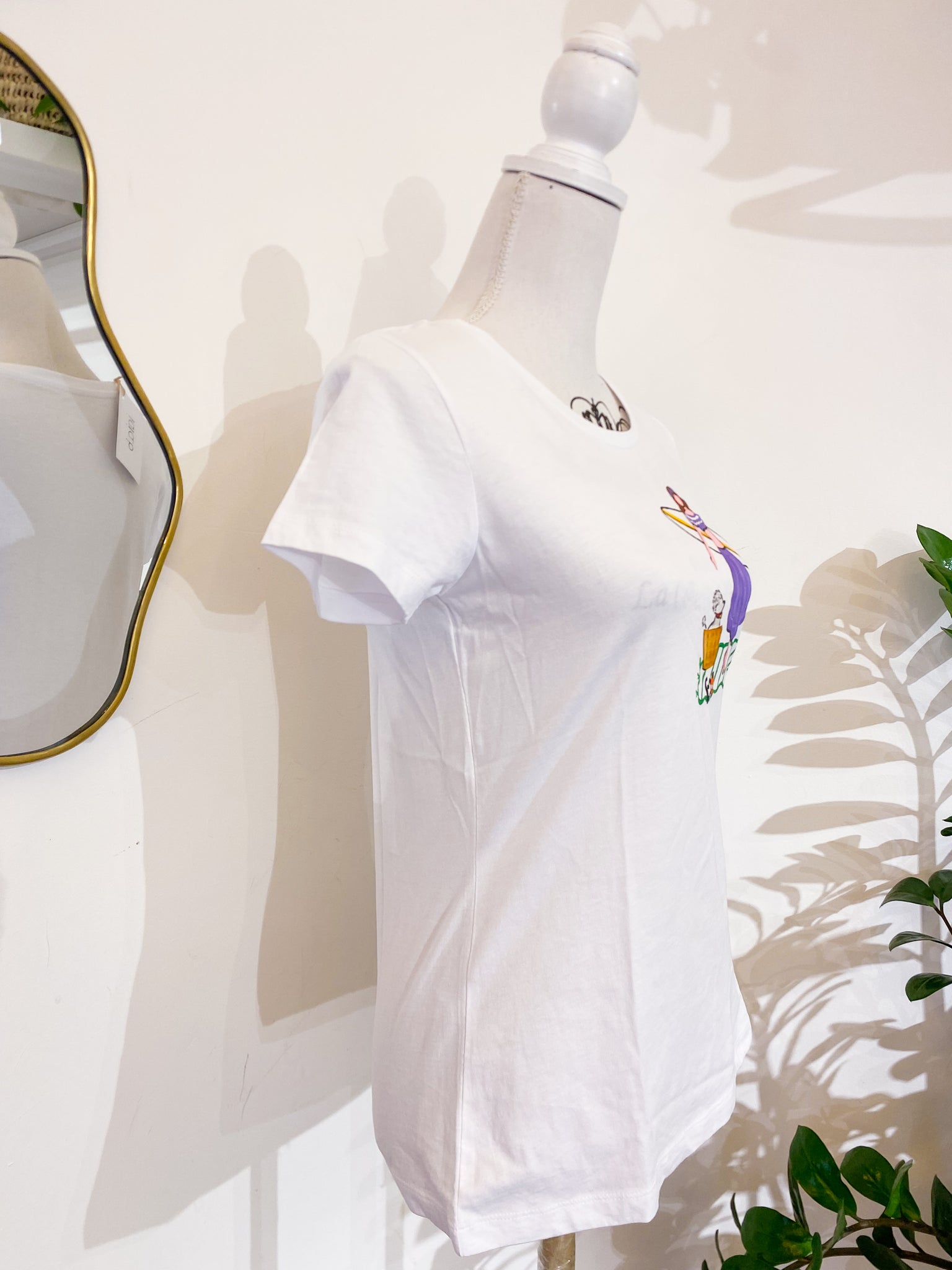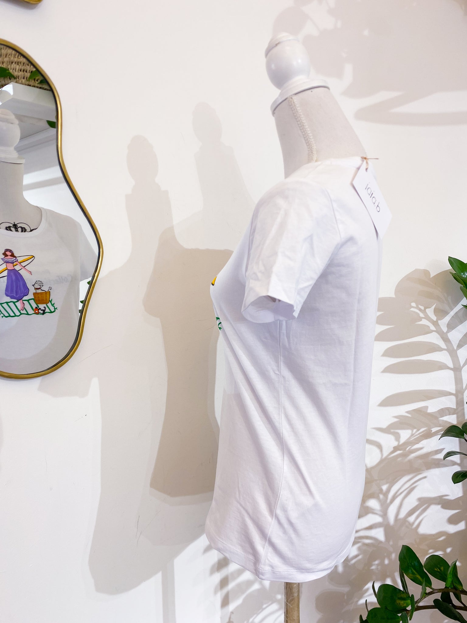 T-shirt bianca in cotone con disegno realizzato a mano. Iaia B